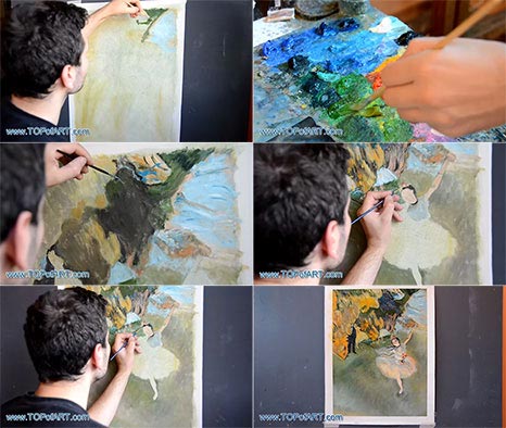 Watch a video showcasing the creation of a hand-painted reproduction of The Star (Dancer on the Stage) by Edgar Degas in our TOPofART studio. Witness the step-by-step process as our artists bring this masterpiece to life.