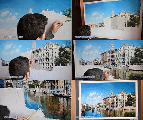 Watch a video showcasing the creation of a hand-painted reproduction of Palazzo Cavalli-Franchetti, Venice by Federico del Campo in our TOPofART studio. Witness the step-by-step process as our artists bring this masterpiece to life.
