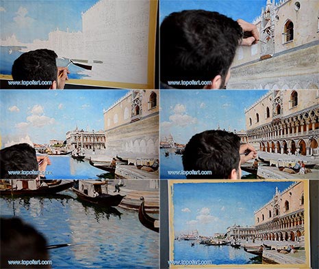 Watch a video showcasing the creation of a hand-painted reproduction of The Grand Canal, Venice by Federico del Campo in our TOPofART studio. Witness the step-by-step process as our artists bring this masterpiece to life.
