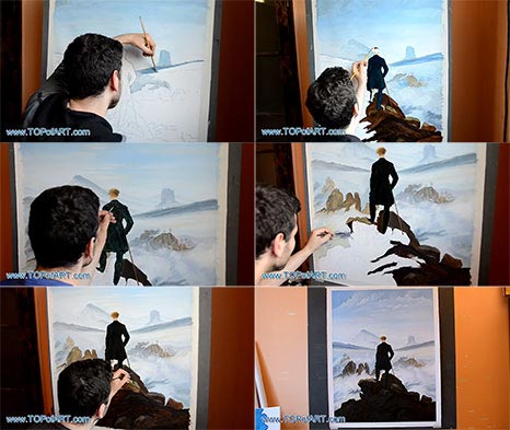 Watch a video showcasing the creation of a hand-painted reproduction of The Wanderer Above a Sea of Mist by Caspar David Friedrich in our TOPofART studio. Witness the step-by-step process as our artists bring this masterpiece to life.