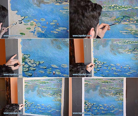 Watch a video showcasing the creation of a hand-painted reproduction of Water Lilies by Claude Monet in our TOPofART studio. Witness the step-by-step process as our artists bring this masterpiece to life.