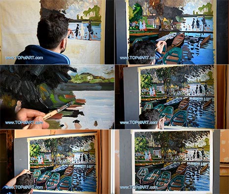Watch a video showcasing the creation of a hand-painted reproduction of Bathers at la Grenouillere by Claude Monet in our TOPofART studio. Witness the step-by-step process as our artists bring this masterpiece to life.