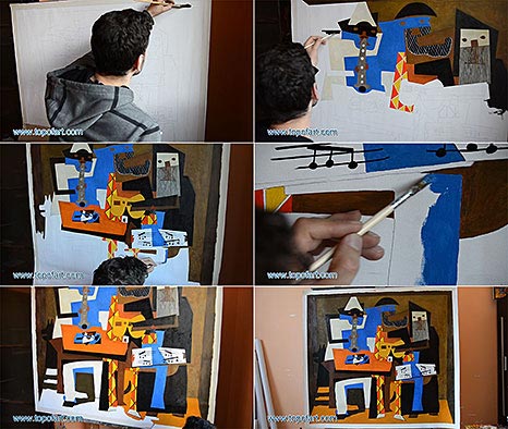 Video showcasing the process of hand-painting a Picasso masterpiece with the utmost precision and care for detail.