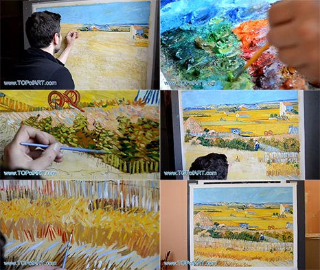 Watch a video showcasing the creation of a hand-painted reproduction of Harvest at La Crau with Montmajour by Vincent van Gogh in our TOPofART studio. Witness the step-by-step process as our artists bring this masterpiece to life.
