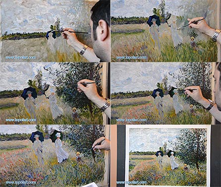 Sehen Sie sich ein Video an, das die Entstehung einer handgemalten Reproduktion der Promenade bei Argenteuil von Claude Monet in unserem TOPofART-Studio zeigt. Erleben Sie den schrittweisen Prozess, wie unsere Künstler dieses Meisterwerk zum Leben erwecken.