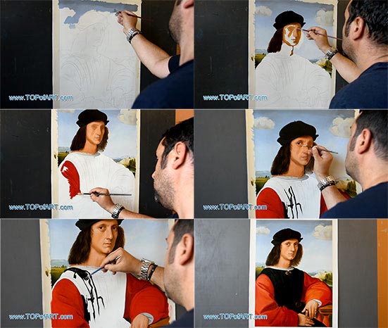 Sehen Sie sich ein Video an, das die Entstehung einer handgemalten Reproduktion der Porträt des Agnolo Doni von Raphael in unserem TOPofART-Studio zeigt. Erleben Sie den schrittweisen Prozess, wie unsere Künstler dieses Meisterwerk zum Leben erwecken.