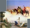 In Orientalist paintings, artists often portrayed these regions in an exotic and romanticized way. Common subjects included harems, bazaars, mosques, desert landscapes, and figures in traditional dress. The paintings were often characterized by vivid colors, intricate patterns, and dramatic lighting.